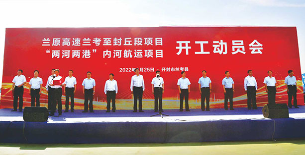 2022年6月25日上午9點,蘭原高速蘭考至封丘段、“兩河兩港”內(nèi)河航運等7個基礎(chǔ)設(shè)施項目集中開工動員會主會場在蘭原高速蘭考至封丘段項目建設(shè)工程施工現(xiàn)場拉開帷幕。