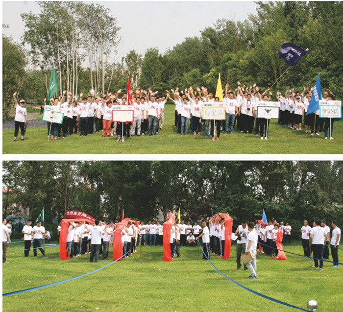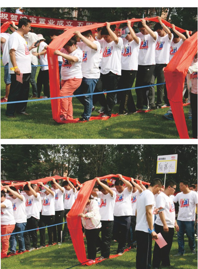 下午3時,在親水平臺附近的草坪舉行了“財源滾滾”游戲項目,各組在我們用布條已制作好的可以容納12-15人的封閉式大圓環內行走,由裁判統一發布口令出發,以圓環全部通過30米跑道到達終點線為止。用時最少且全隊到達者獲勝。