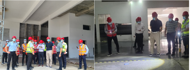 袁董事長在海南鴻寶投資總部項目認真查看了地下室地坪、地下室VIP電梯廳、三層公區精裝樣板等施工情況,聽取了精裝修單位浙江亞廈裝飾股份有限公司、深圳洪濤集團股份有限公司現場負責人關于六、七層辦公區精裝修工序安排、施工工期等情況的匯報,要求精裝修工程務必精細施工,做好質量管控,完美展現設計效果。