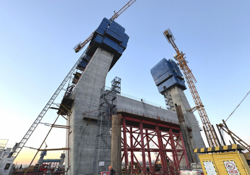 2023 年是項目開工建設的開局之年,在地方政府及主管部門的支持和幫助下,在鴻寶集團的堅強領導下,項目公司克服土地組卷批復遲緩及征地拆遷難度大、小浪底泄洪時間長等不利因素影響,堅持“三個不相信”企業信念,凝心聚力、攻堅克難,始終咬緊年初投資目標不放松,在項目建設手續全部完成后,科學制定施工生產方案,快速組織,迅速形成施工大干局面,掀起了項目施工生產高潮。目前,項目施工進展順利,黃河大橋主橋施工安全完成三個主塔墩承臺、下塔柱施工,橋塔全部施工至中塔柱,主橋施工工期可控。項目公司嚴格管控施工質量,以“建黃河上質量最好的橋”為目標,確保工程質量始終處于可控狀態,切實做到施工現場安全防護標準化、場容場貌規范化,全年未發生任何質量安全事故。