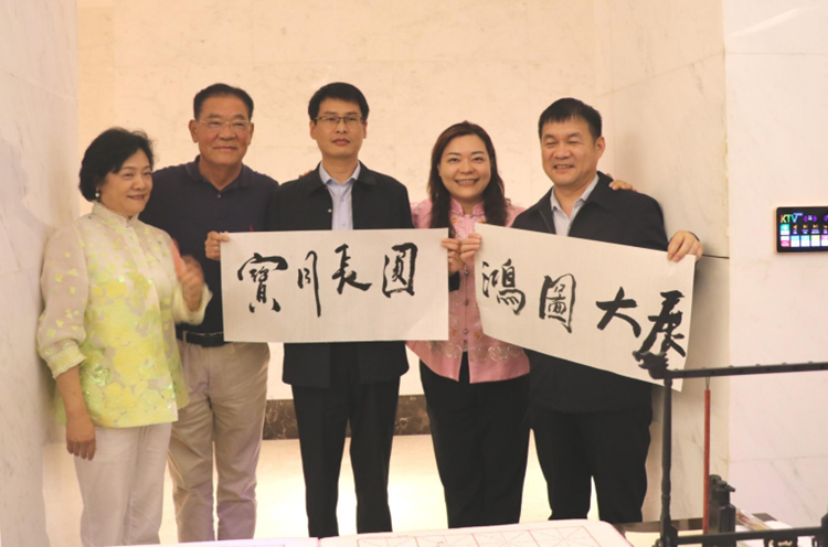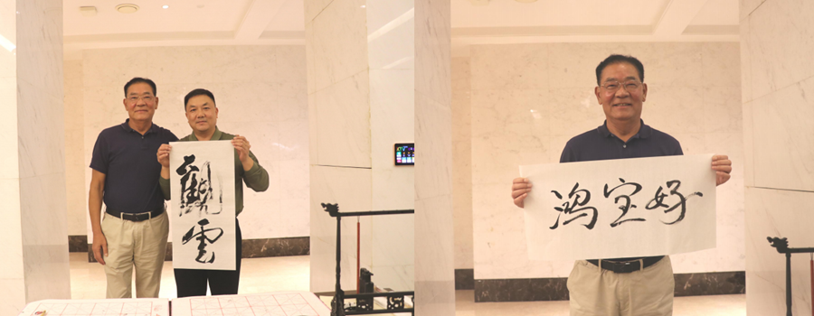 緊接著,鴻寶大酒店總經理鄭偉鵬題寫“觀云”二字,筆意從容,寓意登高望遠、胸有格局;袁董事長也即興揮毫,寫下“鴻寶好”三個飽含深情的字,既是對當下團圓的贊許,也是對鴻寶未來的期許。三幅墨寶相繼呈現,將現場氛圍推向高潮,也生動詮釋了鴻寶人共同的文化認同與精神追求。